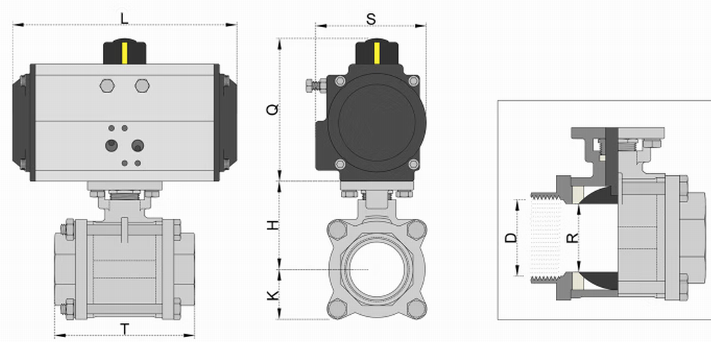 進(jìn)口氣動(dòng)不銹鋼三片式球閥是一種直角回轉(zhuǎn)結(jié)構(gòu)的控制閥,由活塞式氣動(dòng)執(zhí)行器和三片式球閥組成,輸入0.4~0.7MPa氣源即可控制啟閉,氣動(dòng)執(zhí)行器的執(zhí)行速度快,并可遠(yuǎn)程控制。